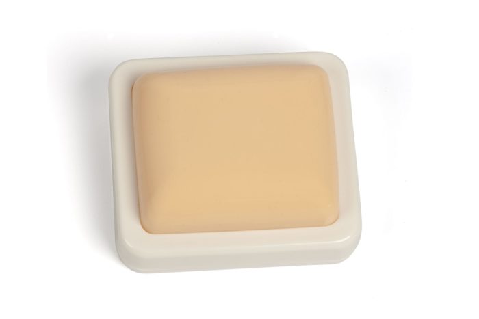 Injection pad for nursing practices. Padded piece and elastic nylon strap to hold on the belly, leg, arm, …